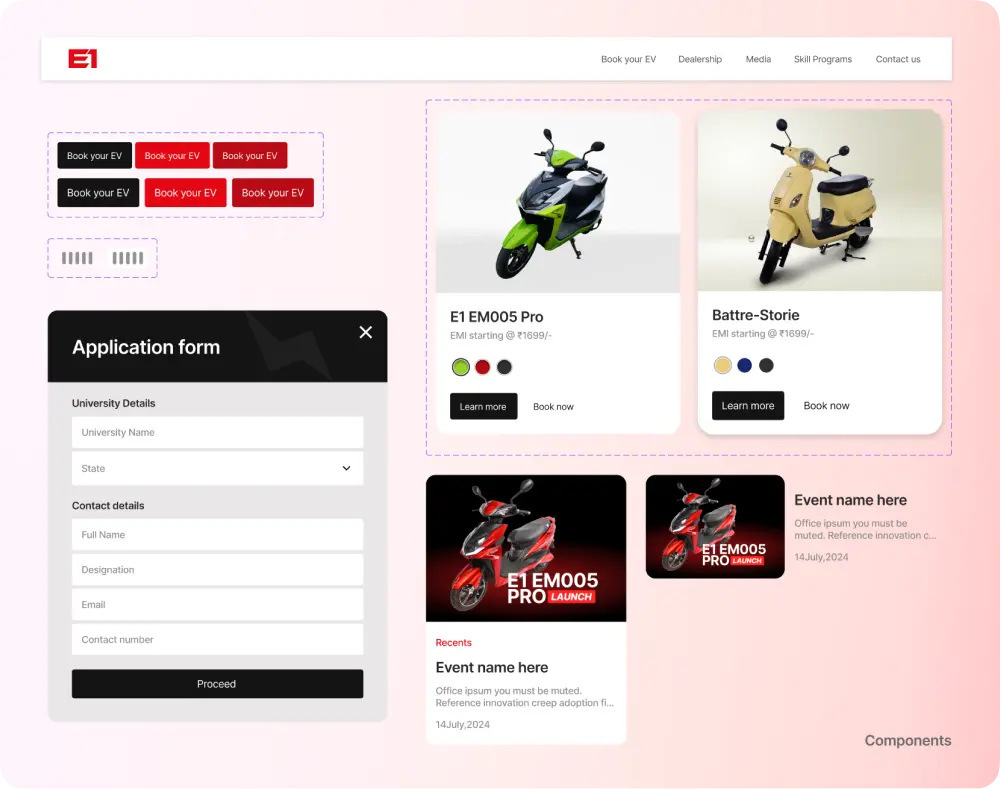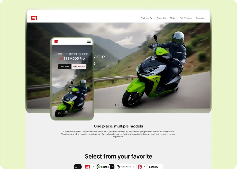At a foundational level, the website needed to deliver a clean, modern, and intuitive experience aligned with Electric Oneโ€™s positioning as a forward-looking e-mobility brand. At the same time, it had to support conversion-focused journeys for both customers and dealership partners.