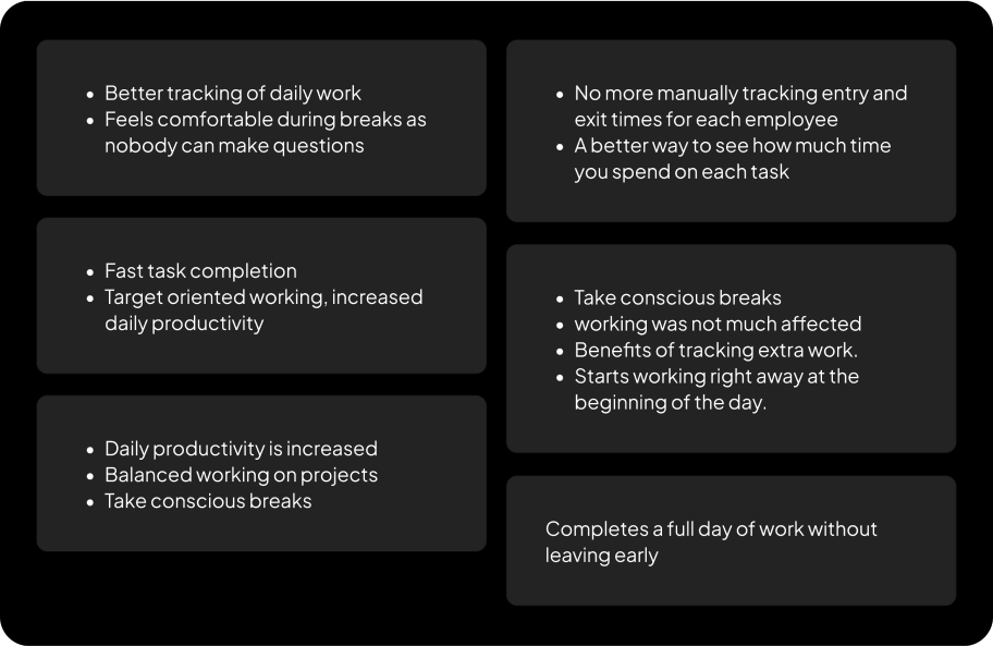 - Lack of Self-Assessment- Employees had no way to analyze their work patterns, leading to poor time allocation across tasks.